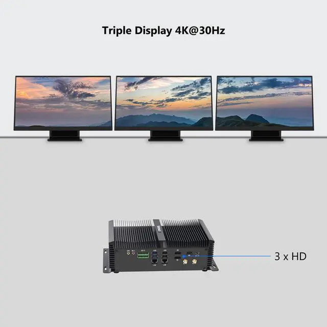 Relative Humidity: 10%~90% (non-condensing)CONNECTORS3xHD, 4xUSB 3.0, 4xUSB 2.0, 6xCOM, 2xRJ45 Giga LAN, 1xGPIO, 1xSPK/MIC, 1xKB/MS, 1xDC IN, 1xSWCONTENTS1xMini PC, 1xPower Adapter, 1xPower Cord, 2xAntennas, Screws, 1xHD Cable, 1xSet of Cables for 2.5 '' SATA HDD (HDD NOT INCLUDED)