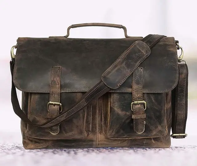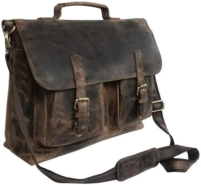 Size: 18 "Inch ( Length ) x 13" Inch ( Height ) x 5" Inch ( Width ), Big pocket to accommodate Ipad's files etc. Cards / phones and pen section inside, 1 external metal zipper for convenience ^^ 2 big front pockets to carry cellphones/ wallets / small books etc / Designed by kk's Bag Can be used as a laptop bag, leather messenger bag, leather briefcase, courier bag ^^ Rustic Vintage look, concealed snap closures for easy access, adjustable shoulder strap ^^ Padded compartment for Laptop's ( fits up-to 17" Inch laptop / Mac book )