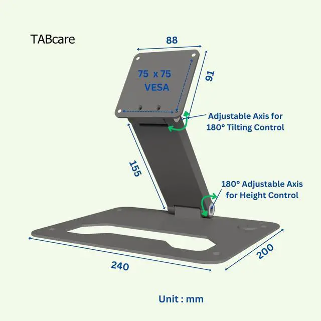Weight: 1.7 lb ^^ Supports Landscape and Portrait Display ^^ Adjustable two axis design, one for 180 tilting control, the other for height control.