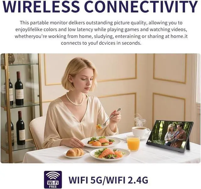 Wireless Display: The wireless portable monitor features a 1920x1080 resolution, providing a crisp and vivid displayfor gaming and work on your laptop or computer.