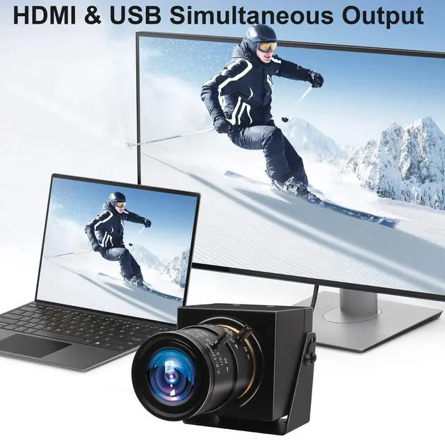 USB Simultaneous Output: 4K HDMI camera has 3 display modes. USB mode / HDMI mode / USB & HDMI mode simultaneously display. It comes with an HDMI cable and a USB 3.0 Type-C cable for simultaneous HDMI and Type-C output to two external monitors. There are 4 video compression methods: MJPEG, YUY2 (YUYV), H. 264 and H. 265. By adopting USB 3.0, it provides high-quality images with a frame rate of 60 fps for all resolutions of MJPEG and H. 265 compression methods. ^^ Adjustable Focal Length - 4x