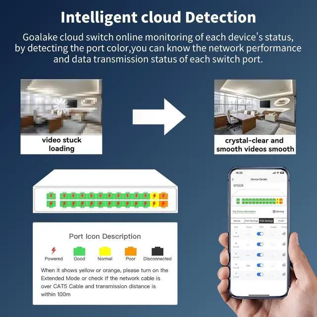 ^^ High Cost-effectiveness: Reduce setup time and ongoing maintenance costs with our plug-and-play Cloud Managed Switch. You only need to spend the price of ordinary switches to purchase our switches with cloud management function. Our cloud management switches provide an intuitive visual interface. When remotely managing the switches, you can have a clearer understanding of the network status and device configuration, and quickly locate and solve problems that occur on site without having to visit the site in person.