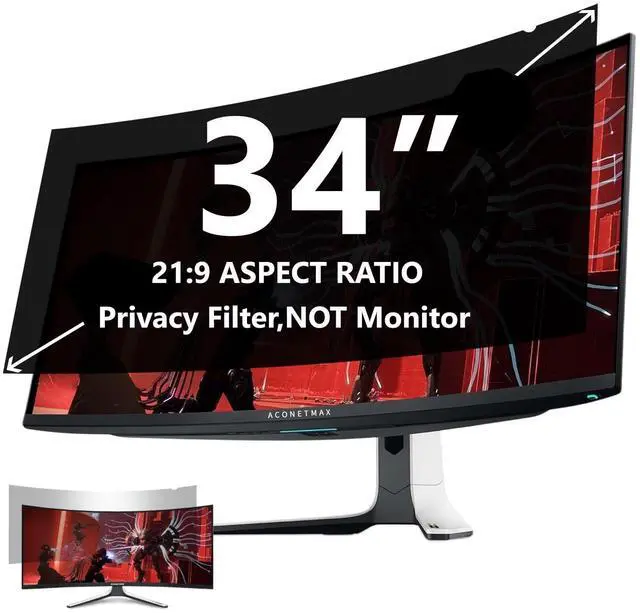 Filter Dimentions- Width: 31 3/8" (797 mm), Height: 13 3/16" (335 mm), Diagonal: 34" ( 863.6 mm) Aspect Ratio 21:9 - ACONETMAX 34 Inch Monitor Privacy Screen Filter is engineered to be compatible with HP, Dell, Samsung, Lenovo, LG, Acer, ASUS, ViewSonic, and other monitor brands. Please verify your computer screen's width and height measurements before ordering. It's not recommended to make your selection based solely on your computer screen's diagonal size. ^^ Superior Privacy and Anti Glare- ACONETMAX Computer privacy screen filter blacks out your computer screen when viewing from the side, while maintaining a crystal clear screen straight-on. The Anti-Glare Protector also protects your eyes from harmful glare, UV, and blue light.