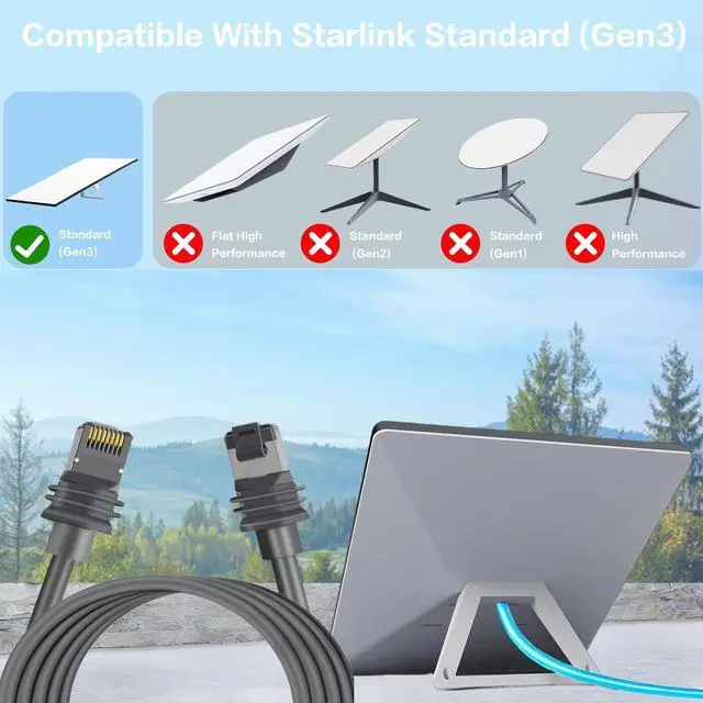 Compatible with Starlink Gen 3 Cable :This replacement cable is engineered specifically for the Starlink Gen3 Rectangular Satellite systems to ensure optimal performance and long-term reliability. (Please note: It is not compatible with Starlink Gen 2 and Starlink Mini)