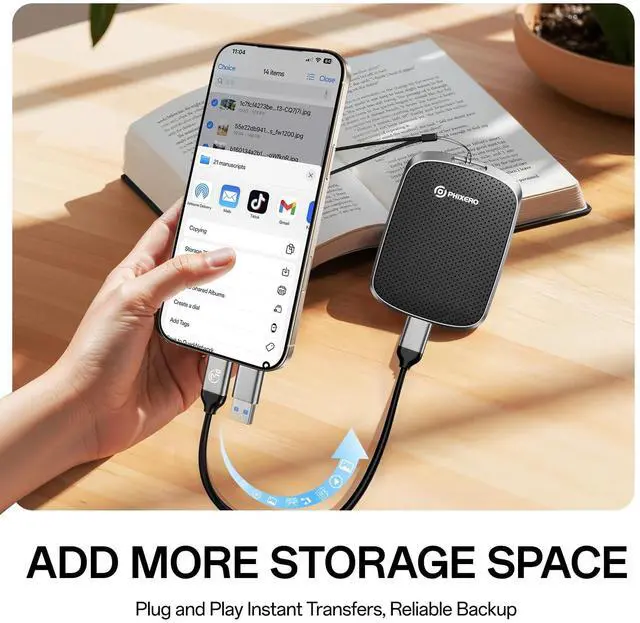 It can be easily put into a briefcase or a pocket of clothes. ^^ Seamless cross-device use Whether you are working or creating for entertainment, you can control your content at any time through your smartphone, PC and other devices with the USB C&A cable. You can connect the PHIXERO P5PLUS Portable SSD to your devices without any operation. It is convenient for everyone to use their mobile phones to directly read files for file sharing, data transmission, and video playback while working or studying. ^^ Rich Compatibility P5PLUS Portable Solid State Drive is compatible with Windows / Mac OS / Linux / Android systems and supports all devices with USB C & A ports, including PC / laptop / tablet / smart phone / TV / game console.