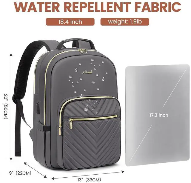 Upgraded Laptop Backpack Women: Classic V-shaped embroidery thread. Upgraded double LOVEVOOK no-slip metal zippers, water resistant Nylon fabric with polyester lining, ensures long lasting usage. Total of 4 compartments and 16 pockets for your computer, A4 folder, bottles, umbrellas, clothes, work supplies, college supplies and travel essentials.