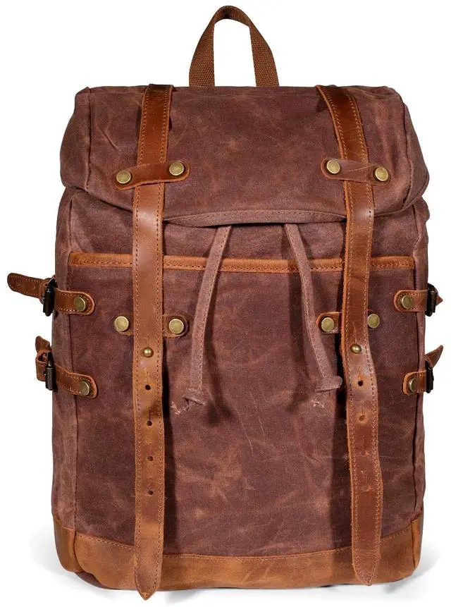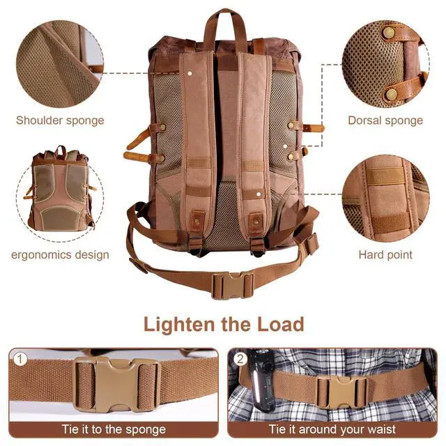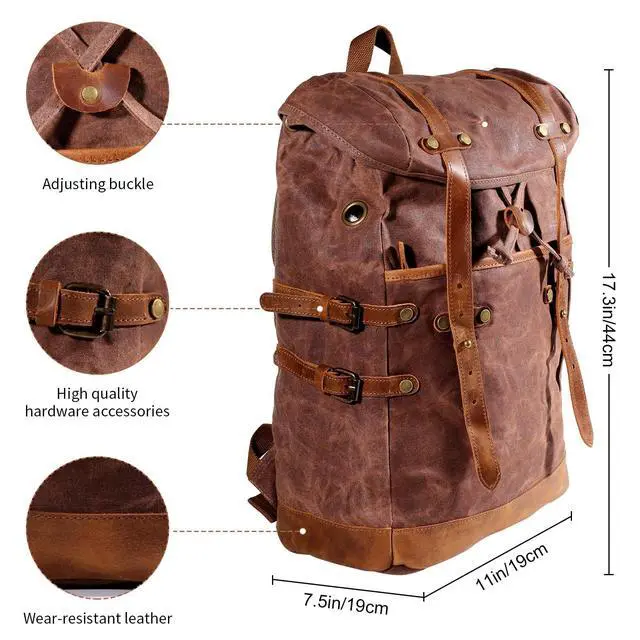^^ DESIGN: Premium water repellent waxed canvas, it can protect your stuffs inside against the sudden rain. Its wide shoulder strap design is dispersion the weight and have Comfort and durability, this strap can easily adjust its length when needed. Carrying handle made of the same cowhide and fixed by high quality hardware, which makes the canvas backpack easy to use. A organized laptop backpack with quick-access any of your belongings.