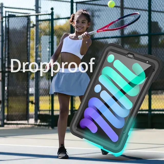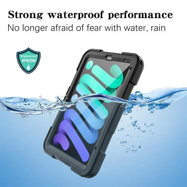 Protect your iPad Mini 6 & 7 from water, drops, and everyday accidents with this rugged, waterproof, and versatile casemaking your adventures more colorful and worry-free. Waterproof, Snowproof & DustproofWith an IP68 waterproof rating, this case can protect your iPad Mini from water up to 2 meters deep for 30 minutes. Fully sealed to keep out snow, ice, and dust, your iPad stays safe in all conditions. ShockproofEngineered with shock-absorbing silicone and a hard PC shell, this case ensures your iPad Mini remains protected from drops and impacts, even from up to 6.6 feet/2 meters high.