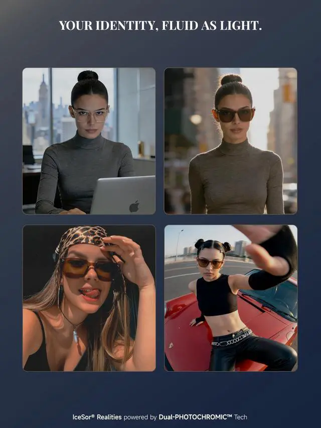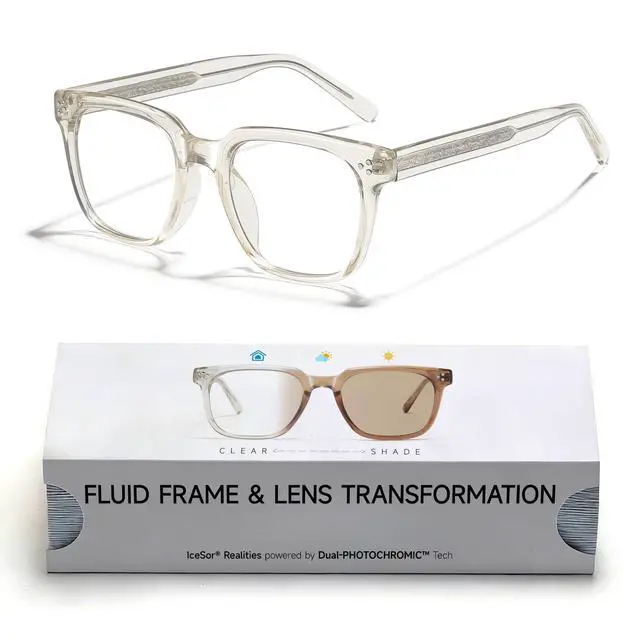 [THE CHAMELEON EVOLUTION] Why settle for just lenses? IceSor features a revolutionary Full-Unit Transition. As UV intensity rises, both the TR90 frame and the lenses deepen in color simultaneously. From a crystal-clear intellectual look to a sophisticated deep-shadow aesthetic, your entire identity adapts to the light. ^^ [ARCHITECTURAL