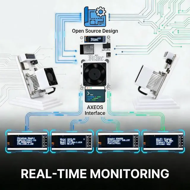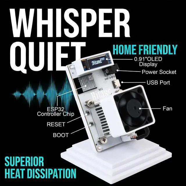 OLED display: Easy to use! Connect to your home 2.4G WiFi via the user-friendly AxeOS interface, input your Bitcoin address, and start mining in minutes. The 0.96" OLED display shows real-time hashrate, temperature, and network statuskeep tabs on your miner at a glance. Wireless connectivity eliminates cable hassle, while remote management (via AxeOS web dashboard) lets you control it from anywhere in your home. ^^ Open Source Freedom & AxeOS Compatibility: Built for tinkerers and learners alike, the Bitaxe Gamma 601 is fully open sourcecustomize firmware, tweak performance settings, or dive into the community-driven AxeOS ecosystem. It supports all major mining pools and solo mining protocols (Stratum V1), with free updates for continuous feature improvements. Join a global community of open-source miners for tutorials, firmware optimizations, and technical supportideal for anyone wanting to learn mining mechanics. ^^ Ultra-Quiet & Compact Design for