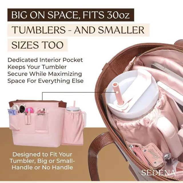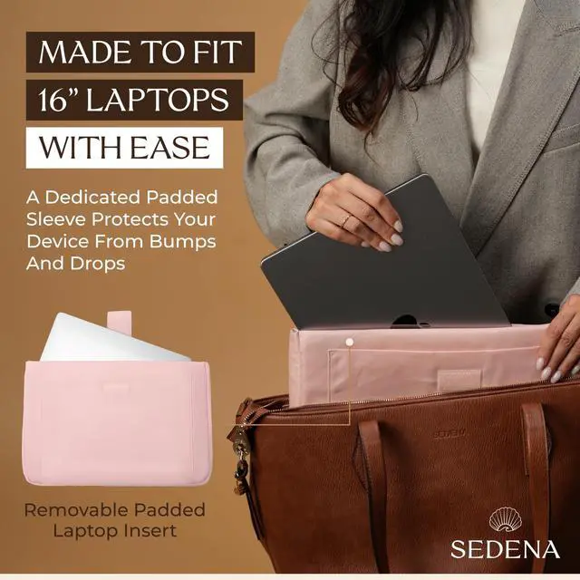DescriptionThe Sedena Anti-Pickpocket Laptop Tote Bag in Dark Brown is designed for women who need a stylish, functional, and secure everyday carry solution. This premium vegan leather work and travel tote includes a detachable padded sleeve that fits up to a 16-inch laptop, plus multiple interior pockets for chargers, cosmetics, notebooks, and other daily essentials. A built-in cupholder fits a 30oz Stanley or water bottle without tipping, while RFID-blocking pockets help protect your cards and passport. The anti-pickpocket zipper system keeps your valuables secure while commuting, shopping, or traveling.