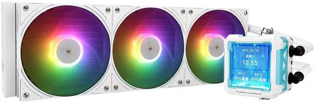 2000 RPM of high speed operation combined with 360-size cooler exhaust air quickly takes away high temperatures. ^^ [ARGB God Light Synchronization] The ARGB of the pwm fan and the water-cooling head is synchronized with the 5V 3pin on the motherboard, efficient cooling while providing rich lighting effects, supporting lighting effects Connect in series to avoid insufficient light slots. ^^ [ 2.73 -inch display] The heat dissipation LCD supports personalised moving picture display, 450 NITS peak brightness, 24 BIT true colour, free monitoring of the display of various system parameters, background format as well as customised text can be displayed, superb display play.