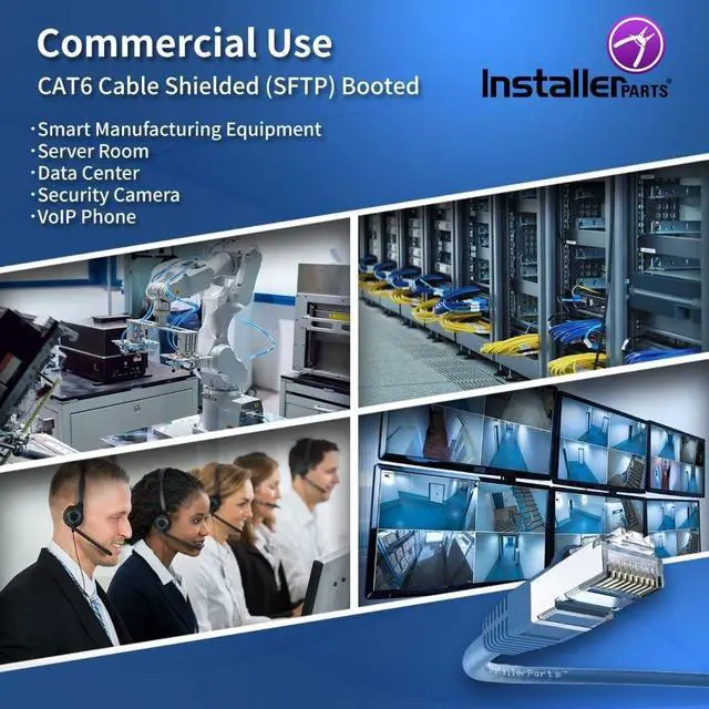 Shielded CAT6 Cable: InstallerParts SSTP / SFTP (Screened Foil Twisted Pair) patch cables are doubled shielded with an overall braided screen and foil screened twisted pairs for the best prevention of noise, electromagnetic interference and crosstalk. ^^ High
