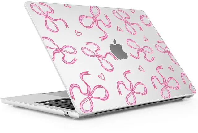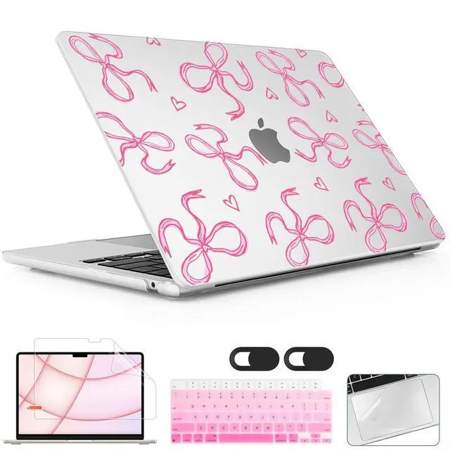 Lepeoac for MacBook Air 15 inch Case 2023 2024 2025 Release A3241 M4 A3114 M3 A2941 M2 with Liquid Retina Display & Touch ID, Hard Shell with Screen Protector & Webcam Cover, Pink Bows Heart