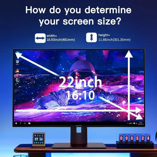 22 Privacy Filter Size Width: 18.93 inches/481mm), Height: (11.86 inches/301.35 mm) - 16:10 Aspect Ratio.The Halloive Computer Privacy Filter is designed to be a perfect fit with HP, Samsung, Dell, Lenovo, Acer, Asus, LG, Ubisoft and other brands of monitors. Note that this privacy filter fits with frameless/thin/narrow bezel monitors and does not achieve a perfect fit with monitors with bezels (computer screens with raised bezels) but is suitable.Please check the width and height dimensions of your computer screen before ordering.