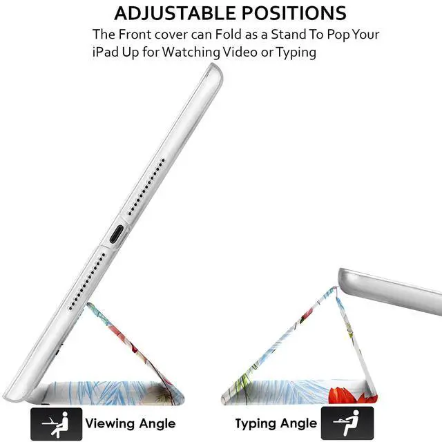 High Quality Lightweight Material & Excellent design makes this case feel very Stylish & Premium & Fully Protects your device against Shock, Abrasion, Scratch, Fingerprint, Slips, Dirt & Corner Damages. ^^ Dual-Angle Viewing/Typing Built-in Dual Angle Viewing/Typing Stand makes it much more comfortable for Typing, watching videos, surfing web & reading while keeping both your Hands Free & avoids any Joint Pain. Allows unobstructed gesture swipes & enhances the beauty of your iPad due to its exclusive Bezel-Free design. Built-in Magnet also helps to hold your iPad steady while using the Multi-Angle Stand feature & prevents your iPad from falling.