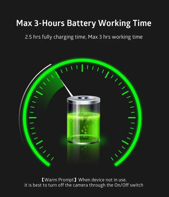 70 wide angle view ensure anyone can be visible in the meeting rooms. ^^ Built-in Noise-Canceling MicWith Noise Reduction Algorithm microphone, up to 5m far-field voice pick-up, reduce background noise, automatically amplify your voice, achieve a clearer conversation. ^^ Max 3-hours Battery Working TimeBuilt-in a rechargeable 1500mA lithium battery, 2.5 hrs fully charging in shutdown state and get max 3 hours working time. Warm PromptThe device is not fully charged when it leaves the factory. ^^ How to Re-Pairing1. Turn on the camera, short press the pairing button on the camera, the green light will flash quickly.