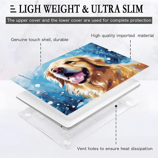 Yicomon Compatible with MacBook Air 13 inch Case 2020 2021 M1 A2337 A2179 A1932, Plastic Hard Shell Case for Mac Air 13 with Touch ID (2018-2021) - Cute Dog On Snowy Day