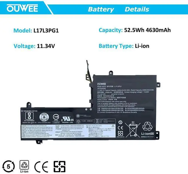 Capacity: 52.5W h 4630mAh. ^^ Replacement For LaptopLenovo Legion Y545-PG0 Legion Y530-15ICH Y7000 2019 1050 Y7000-2019-PG0 Y540-15IRH-PG0 Y7000P Series. ^^ Compatible Part NumberL17L3PG1 5B10Q82428 L17C3PG1 5B10Q88561 L17M3PG3 5B10Q93417 L17M3PG1 L17M3PG2 5B10W67238 5B10Q80766 ^^ ConnectorBefore placing your order, Please refer to the picture and check it. Because the products produced by different factories will have differences, such as size, cable length, interface, etc. ^^ Use SkillsIf the new battery is not recognized during the initial installation, please reinstall and check if the interface is fully connected. Discharge the new battery to 5% (not 0%), then charge and cycle 3-4 times to wake up the new battery.