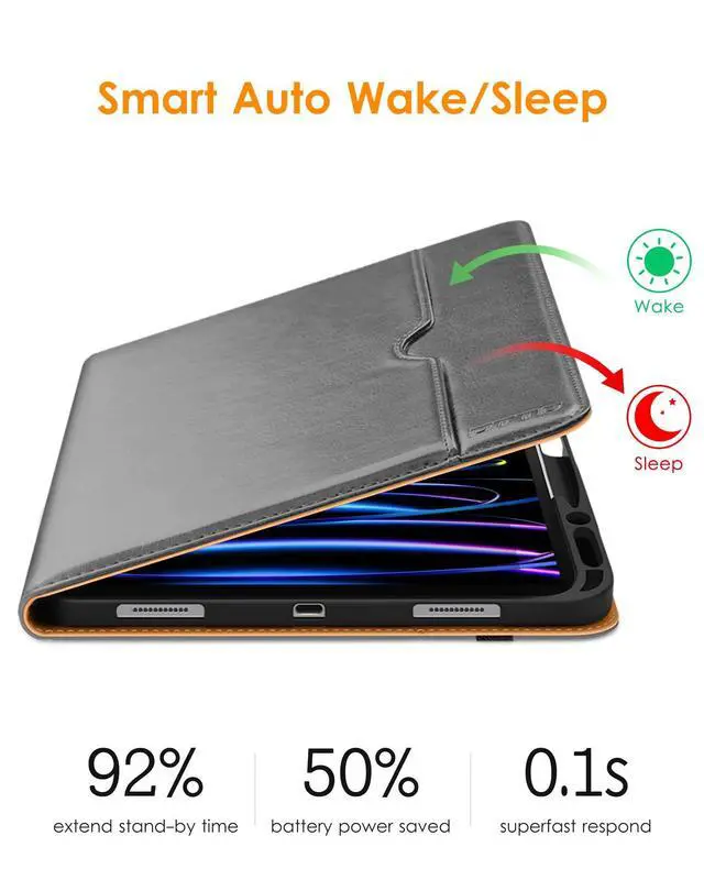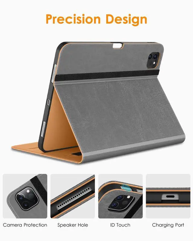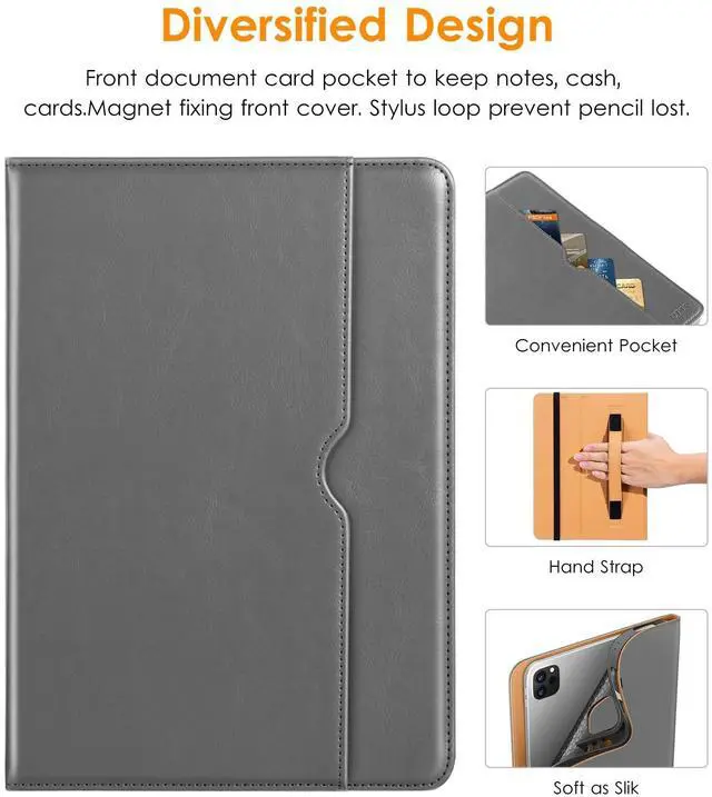 Model Number: A2764/A2437/A2766/A2436/A2378/A2461/A2379/A2462/A2229/A2069/A2232/A2233/A1876/A2014/A1895/A1983. Not compatible with any other iPad model. ^^ Built-in Pencil Holder - Securely carries and protects your pencil wherever you go. A hole has been designed at the back of the pencil holder that you can easily push pencil out without taking off your iPad Pro 12.9 case. ^^ Magnetic Smart Cover - Support Auto Wake/Sleep, built-in leather hand strap(one-handed operation) and external elastic band enhances magnetic closure (reduces battery drain). ^^ Multi Function - Multiple horizontal bracket angles for comfortable watching movie or typing. Features front document card pocket to keep notes, cash, cards.