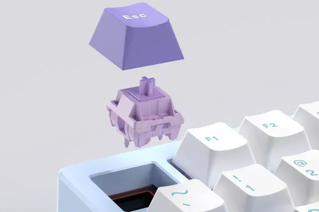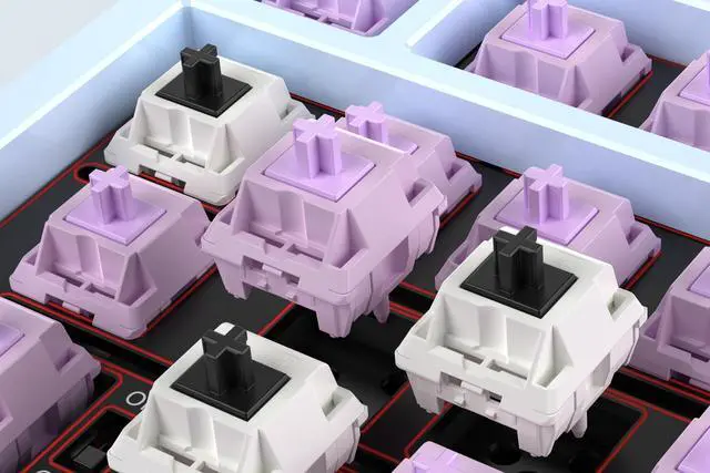 The HMX Violet switch is designed for precision and clarity, offering a sharp, defined sound with each keystroke, and minimal wobble for a solid feel. It's perfect for those who appreciate tactile feedback and accuracy. On the other hand, the JWK WOB switch provides a smoother typing experience with a crisper, thicker "thock" sound, thanks to its greater tolerance between the stem and base. This switch is ideal for users who prefer a buttery smooth action and satisfying sound with every press. Both switches are pre-lubed to ensure smooth and consistent performance right out of the box.
