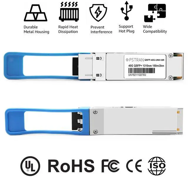 40GBASE-UNIV QSFP+ Optical Transceiver Module, Built-in high performance Chip, Max. Power Consumption 3.5W enable Prolonged Service Life, Commercial Temperature Range 0 to 70C (32 to 158F) ^^ Tested in Targeted Switch Devices for Superior Performance, Quality, and Reliability. We owns compatibility LAB facilities to meet the EEPROM coding and writing requirements with various brands of the latest and advanced networking equipments to ensure the reliability. ^^ Built-in Real Time Digital Optical Monitoring Capability for Strong Diagnostic Capabilities ^^ Up to 150m transmission on OM3 multimode fiber (MMF) or 2km transmission on single mode fiber (SMF).