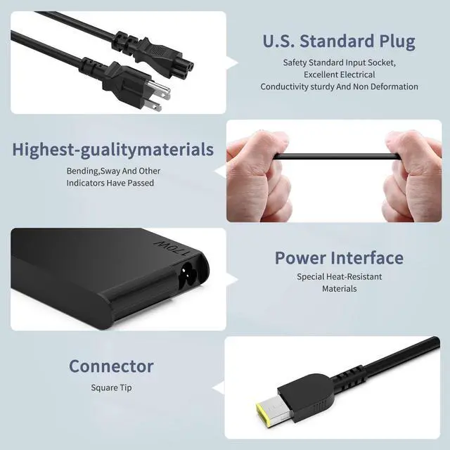 Connector Size: Square Yellow Tip ^^ 170W Laptop Charger Compatible with ThinkPad P50, P51, P52, P53, P70, P71, P73, P15, P17, P15v, P15g, E440, E450, E455, E480, E485, E490, E490s, E540, E550, E550c, E555, E580, E585, E590, S431, S440, S531, S540, T431S, T440, T440P, T440S, T450, T450S, T480, T480S, T540P, T550, T580, T580S, W540, W541, W550s Power Supply ^^