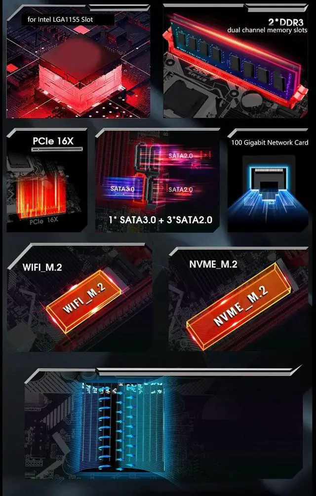 ^^ SATA 3.0: LGA 1155 motherboard has SATA 3.0 high speed hard drive interface, supporting SSD high speed.