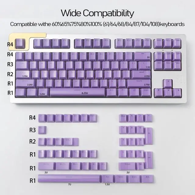 Key Caps Mechanical Keyboard: The keycaps are made of high-quality PC on the outside and sturdy and thick ABS printing on the inside to prevent the legend from fading or wearing over time, ensuring durability and longevity. Designed to be standardized MX compatible with most MX switches ^^