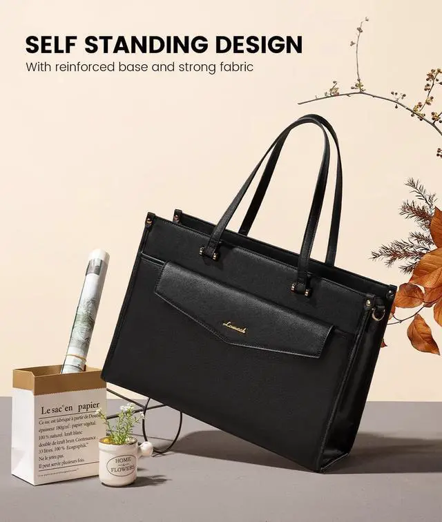 Professional Chic Laptop Tote Bag: Our laptop bag for women measures 17.5 * 6.5 * 12.5 inches, weighs only 3.3 pounds, and can stand upright on its own due to its superior support structure. Constructed with premium crosshatch textured PU leather and reinforced with high-density nylon lining, the work tote bags for women is not only tear-resistant but also waterproof and easy to clean, blending durability with sleek sophistication ^^ Detachable