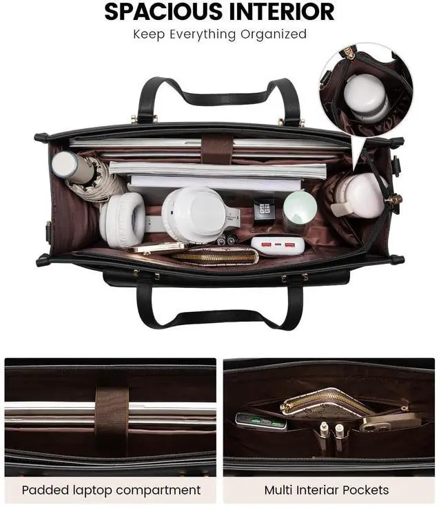 Women: Designed with 12 pockets, including a separate padded compartment that can accommodate a laptop(up to 17.3" ) and tablet, and can also store A4 files, binders, pens and other daily office supplies, this women's briefcase laptop bag ensures you are always prepared. The generous capacity accommodates a 40 oz water bottle, making it a perfect companion for work, travel, or any day on the go ^^