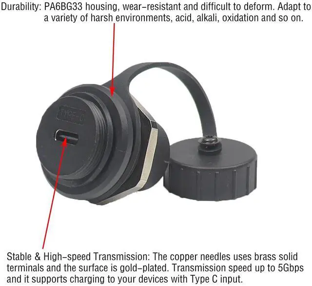 Package Included: 5x Waterproof TYPE C Connector5x Waterproof/Dust Cap Cover