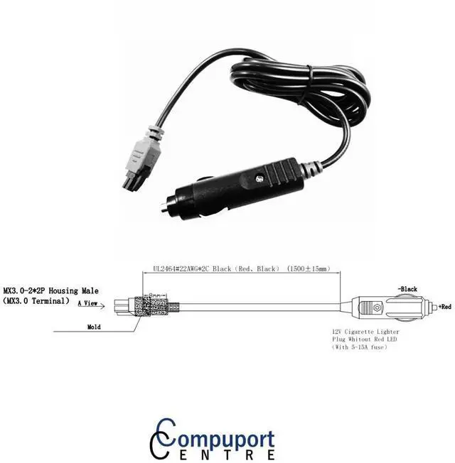CompuPort Power Cable allows you to power your cellular device on the go. Equipped with a 12V Car Cigarette Adapter this cable allows you to get up and running quickly by simply plugging the power supply into an automotive 12V outlet, and with the molded 4-pin Molex connector, directly into your Microhard cellular modem. ^^ 2X2 4 PIN Molex In-Vehicles CLA Power Supply Adapter for use with Cradlepoint Vehicle Power Adapter for COR, IBR600C/IBR650C IBR900,