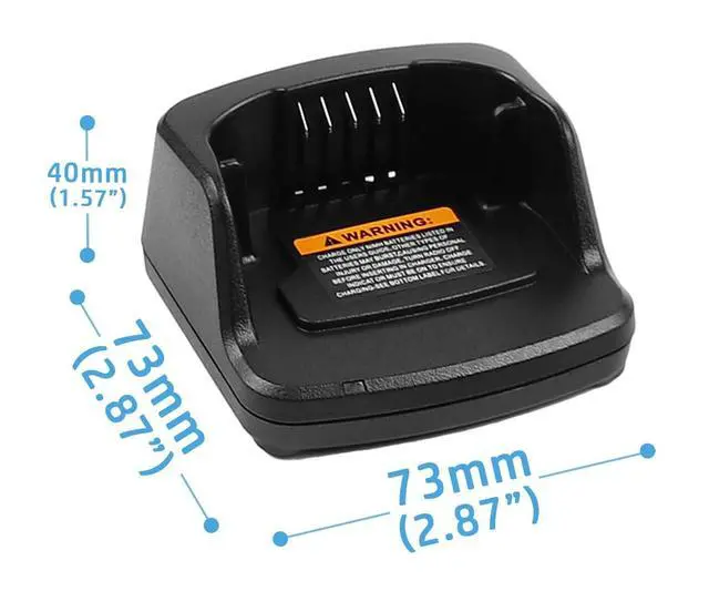 Handy and compact design, easy to use and store, can charge battery with or without the radio, provides rapid and quick charging solution for your walkie talkie ^^ Reference