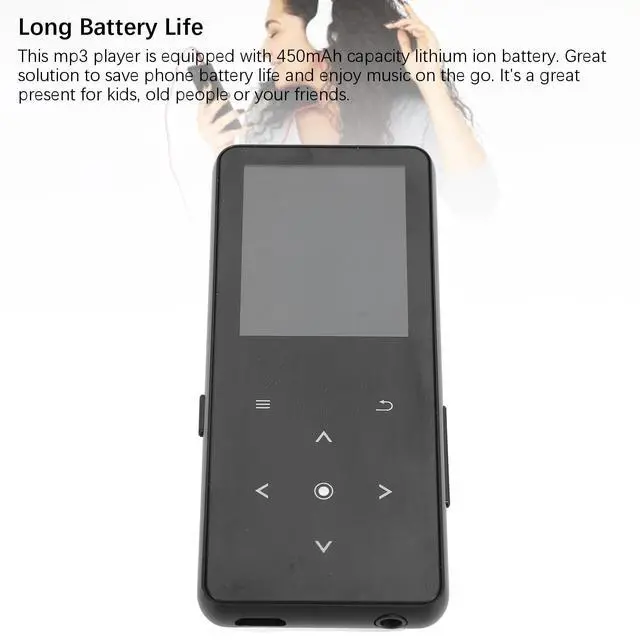 Battery Life: This mp3 player is equipped with 450 mAh capacity lithium ion battery. Great solution to save phone battery life and enjoy music on the go. It's a great present for kids, old people or your friends ^^