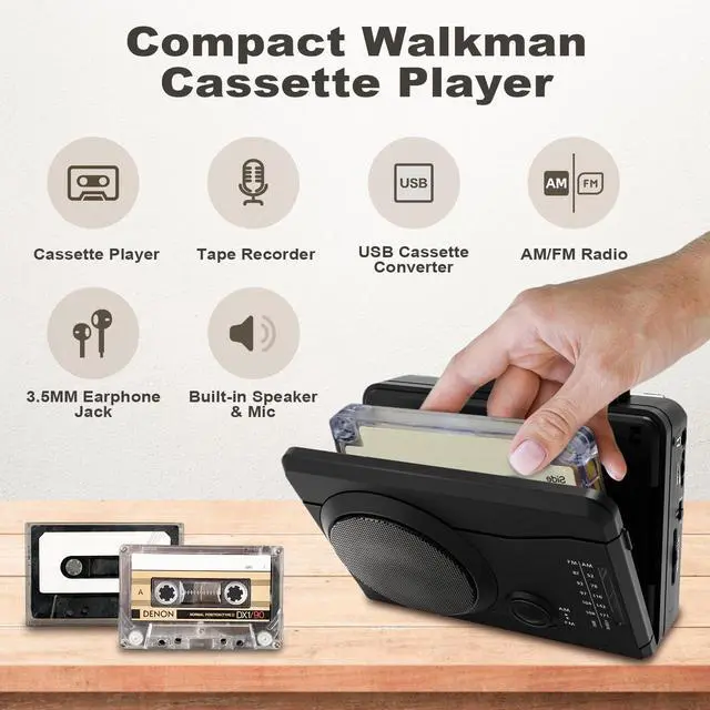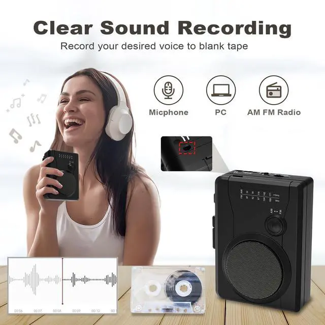 Portable Cassette Player Recorder, Cassette Tape MP3 Digital Converter, AM/FM Radio Station, Reverse Recording - Record from PC to Blank Tapes