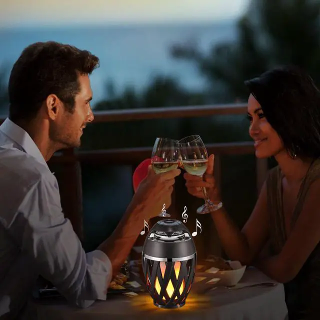 Outdoor Flame Bluetooth Speaker: The Flame Speaker and Light combines excellent audio capabilities with beautiful lights that flicker and move like dancing flames. Bluetooth effective connection distance is about 32 feet, enjoy wireless freedom just like dancing.