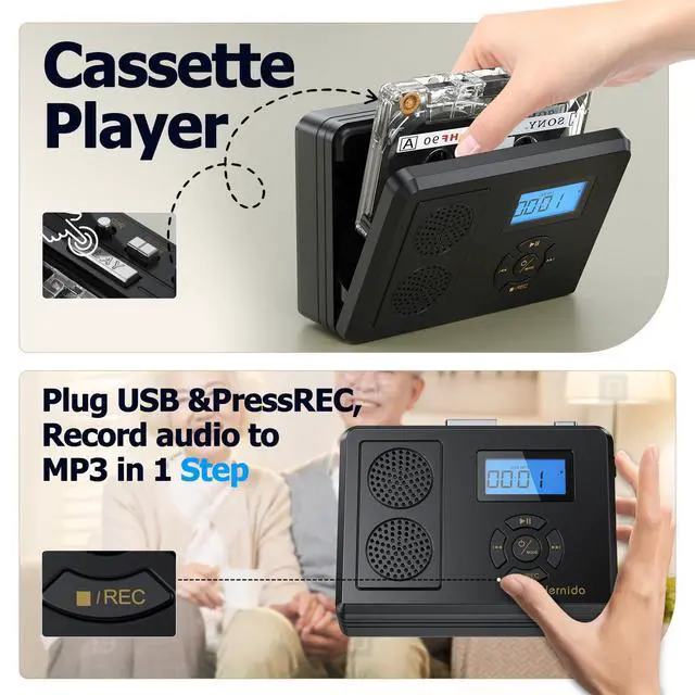 (Recording to tape is not supported) ^^ Modern Meets VintageAuthentic retro design classic all black finish and one-touch tape digitizing controls for a nostalgic aesthetic, even children or the elderly can use it easily.