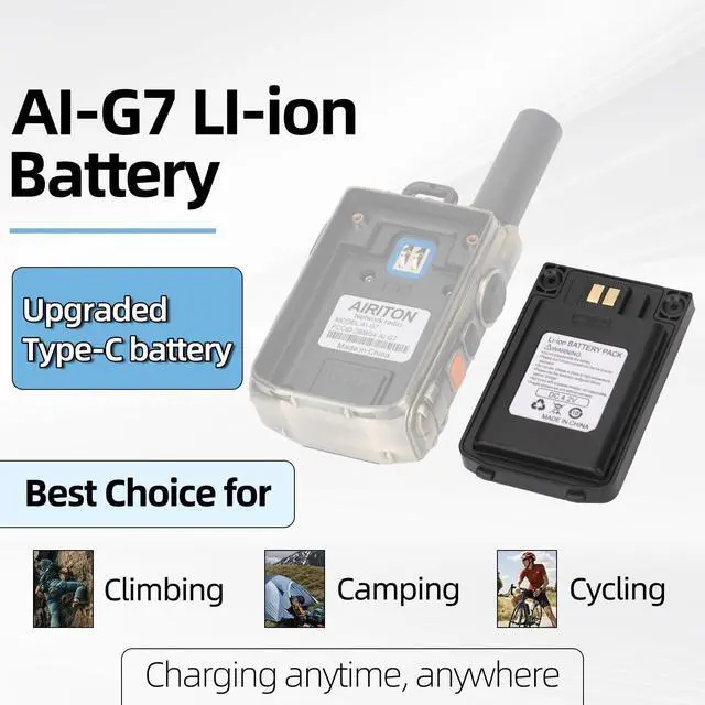 AIRITON AI-G7 Fast Radio Battery Unlimited Range Nationwide 4G Walkie Talkies Battery with USB-C Charger for POC Two Way Radios Push to Talk Over Cellular Radio