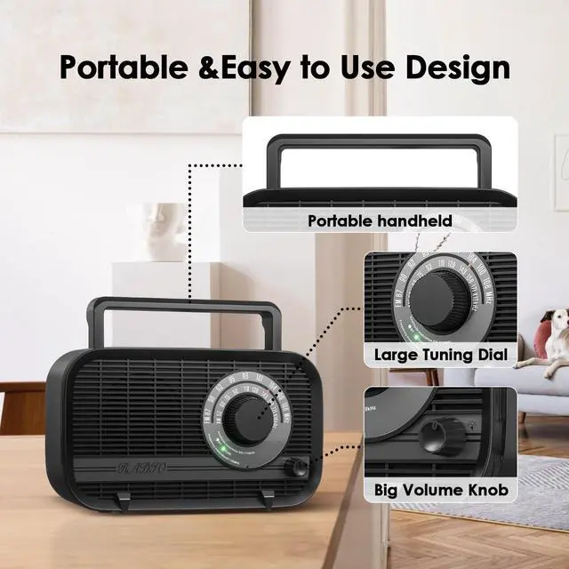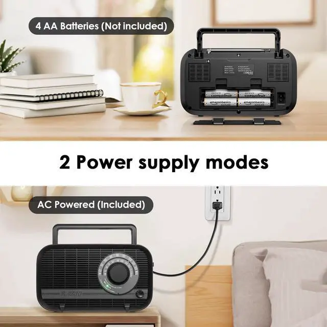 • Portable and User-Friendly Design: Portable radio weighs only 1.37 lbs (0.62 kg) and measures 8.66x2.95x5.04 inches (220x75x128 mm), making it easy to carry and store. Battery radio supports two power supply modes: plugged in power cord or 4 AA batteries, ensuring you can enjoy music anytime, anywhere.