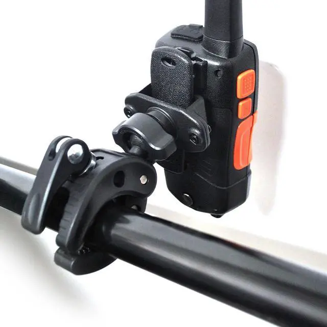 [Compatibility] Suitable for sports equipment with handlebar width between 15cm-45cm ( 5.91 - 17.72 inches). Such as motorbikes, bicycles, e-bikes, scooters, treadmills, indoor bikes and even prams. ^^ [Easy Installation] No tools or wrenches required! The mount is designed to be very easy to install or remove to motorbikes, bikes and other places where there is a horizontal bar. Simply mount it to the handlebars and tighten the nut, giving you the freedom to choose the ideal position for your radio. ^^ [EASY COMMUNICATION] This clip is compatible with a wide range of two-way radios for Baofeng UV-5R 888S UV82 Kenwood Motorola Talkabout Midland Cobra Icom handheld radio (with clip).