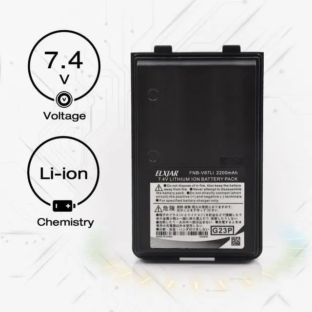 Comprehensive Product Overview: This 7.4V 2200mAh Li-ion battery is a high-capacity replacement for Yaesu and Vertex Standard two-way radios. Compatible with FNB-V67Li and other battery part numbers, it ensures stable and reliable operation across long shifts. Perfect for use in public safety, commercial, and industrial settings where dependable radio performance is essential.