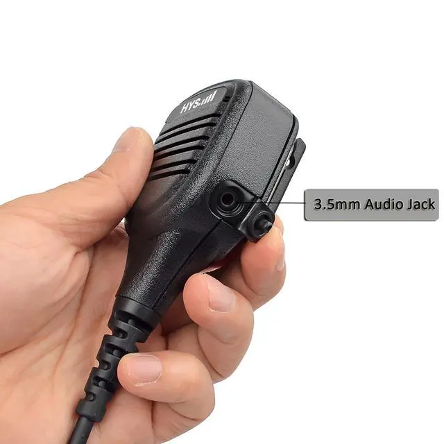 D): 55mm x 60mm x 27mm (without clip). with Coiled Cord. Swivel Clothing Clip, Strong rotatable metal clip has eight positions and 3.5 mm Audio Jack. ^^ Solidstrongand durable cable. (Spiral and Straight) PU Cable Reinforced by Kevlar Long-Life Design. The microphone may be secured to the users lapel or shoulder; Comfortable holding. ^^ High-quality speaker and microphone provide clear audio communication. The microphone may be secured to the users lapel or shoulder; Comfortable holding. High quality sound even in loud environments. ^^ Water-resistant (Ingress Protection-IP 54). Shoulder mic widely used in police, military, nightclubs, bars, paintball, security, restaurants, hotels, bouncer, warehouses, and noisy environments. ^^ Working for Motorola Walkie Talkie XPR3000 Series DEP550E DEP570E DGP8050EELITE DP2400 DP2400e DP2600 DP2600e DP3441 XIRE8608I XIRE8628I XIRP6600I XIRP6620I etc.