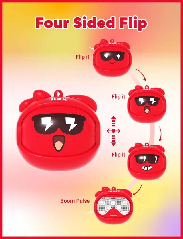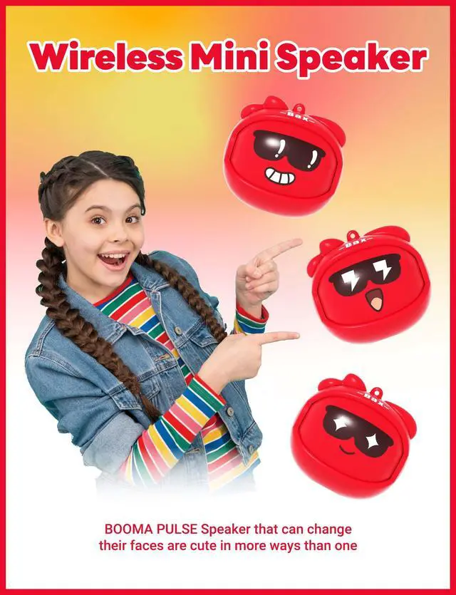 Booma Pulse - mini kids wireless speaker with big sound and fun features, bluetooth 5.3, high quality sound through 3W speaker, fidget friendly with 3 rotating faces