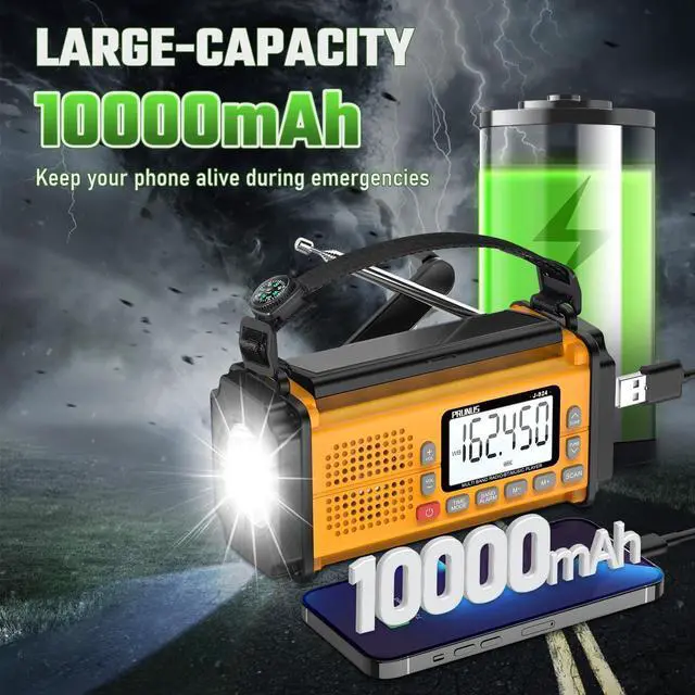 NOAA Weather Stations: This noaa radio weather covers all 7 NOAA stations( 162.400MH z- 162.550MH z), Even if severe weather cuts off electricity, leaving you without internet access, fear not! This emergency crank radio flashlight cell phone charger providing weather forecasts and weather disaster alerts in your area., always stay prepared for emergencies.