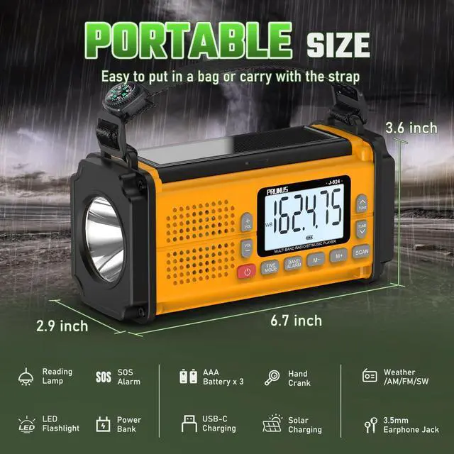 Outdoors & Compass: This battery operated radios for emergencies is born for outdoors. Of course, hand cranked generator has a portable size (size: 6.7 x 2.9 x 3.6 in, weight: 1.3 lb), easily slip into your backpack without taking up much space. Comes with a wrist strap, you can adjust the length or secure the Emergency Radio Hand Crank Solar onto your backpack for outdoor activities. Extra compass attached to strap is very helpful to show you orientation when you get lost outside. ^^ 5 Ways to