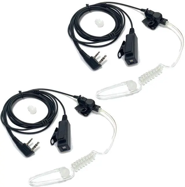 Earpiece cable length: 57 Inches ^^ 2 Pcs 360 Degree Back Clip You can fix the microphone and speaker at the difference part ^^ Big PTT Button for MicrophoneEasy to operation even if wearing gloves ^^ Package Including2 Pcs SM007 surveillance radio earphone with mic