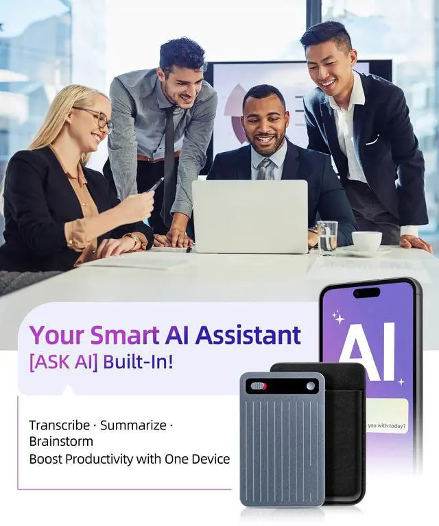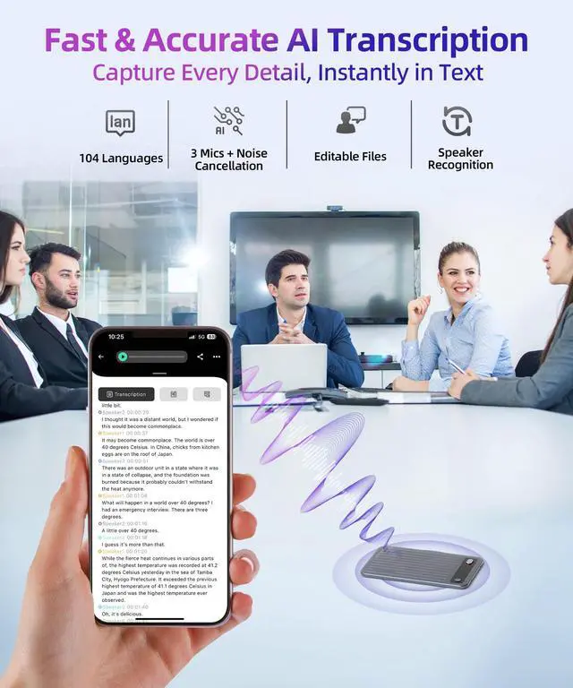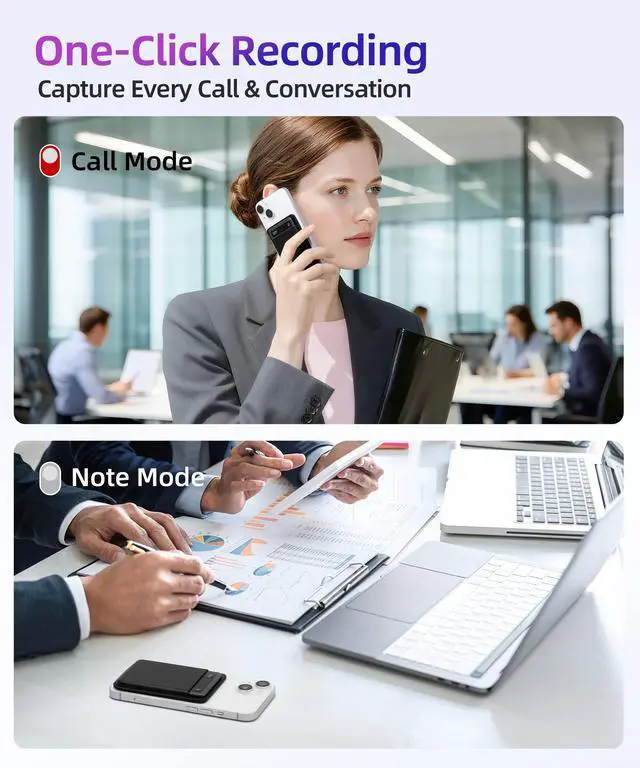 ^^ 360 Noise Cancellation: Enjoy crystal-clear recordings even in noisy cafes, busy offices, or crowded events. The advanced multi-microphone array with AI filtering effectively reduces background noise, capturing every word with unmatched clarity. Perfect for interviews, meetings, and lectures in any environment.