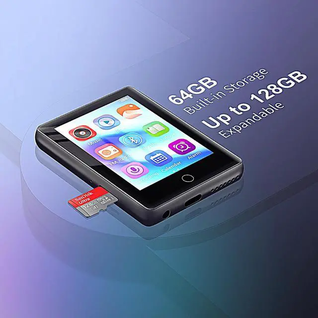 Its built-in HD speaker lets you enjoy music instantly without headphones. ^^ 64GB Storage MP3 PlayerThis MP3 player with Bluetooth features a large 64GB memory, allowing you to store thousands of songs or audiobooks hassle-free. Fast USB 2.0 ensures quick and easy file transfers. ^^ All-in-One Portable MP3 PlayerIntegrating FM radio, voice recording, and e-book reading, this single device meets diverse needs. Paired with an intuitive file browser, it effortlessly organizes your audio, text, and image files. Lightweight and portable, it supports expandable storage up to 128GB, easily keeping up with your daily entertainment and study sessions.