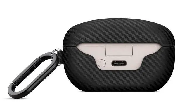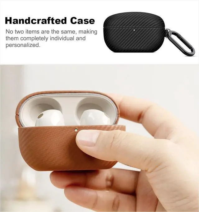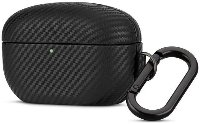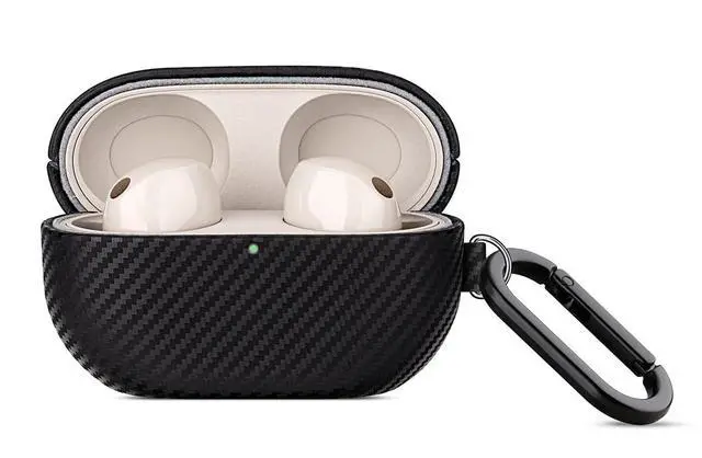 Haobobro Leather Case - for WF-1000XM5 Case Cover with Keychain - Selected Skin-Friendly Leather, with Carbon Fibre Texture, Handmade Shockproof Protective Hard Cover for Sony WF 1000XM5 - Black